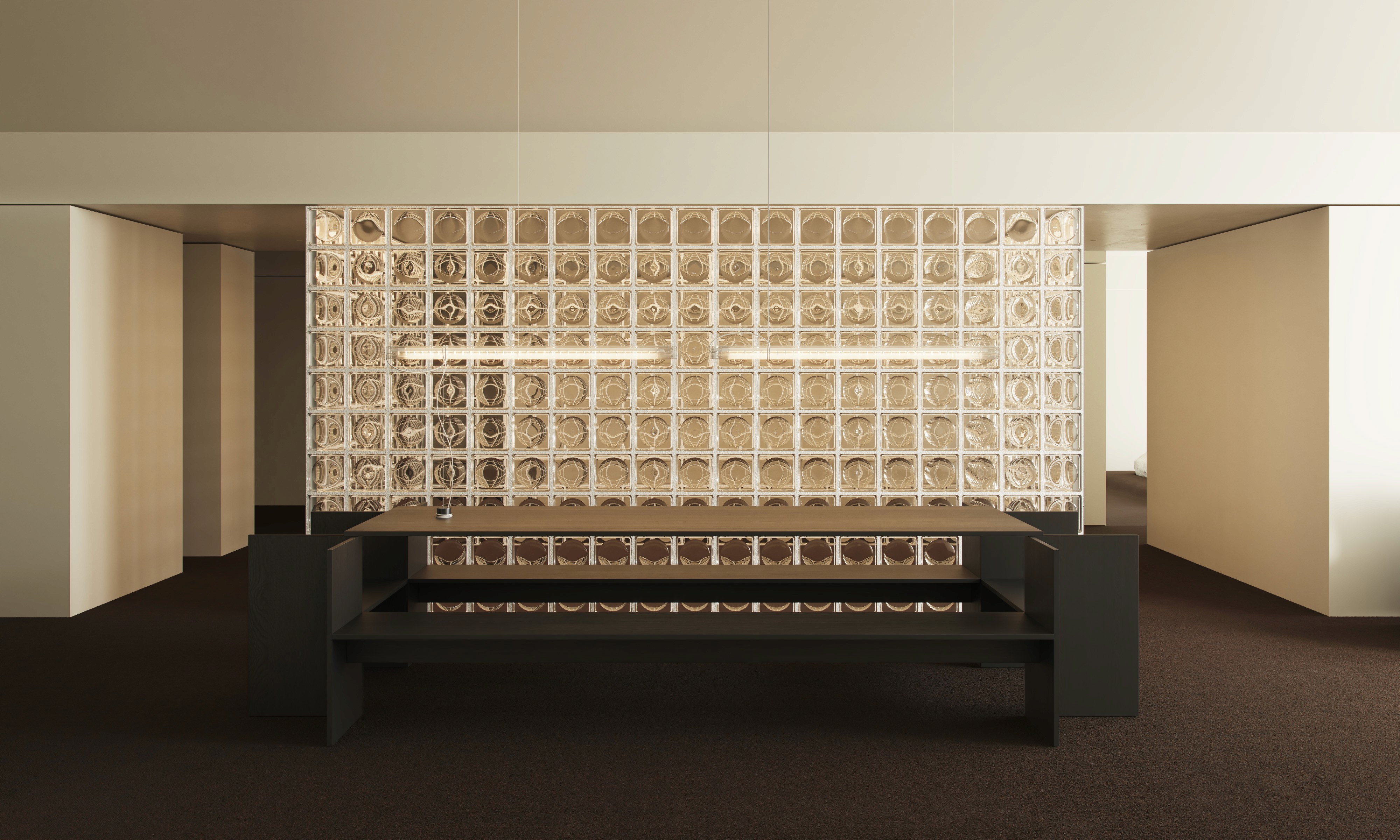 The glass blocks have a very specific visual character, that pressed circular pattern carries a particular cultural memory, somewhere between 1960s Italian modernism and Mediterranean domestic architecture. Was that reference intentional, or were you primarily thinking about what the material does optically?