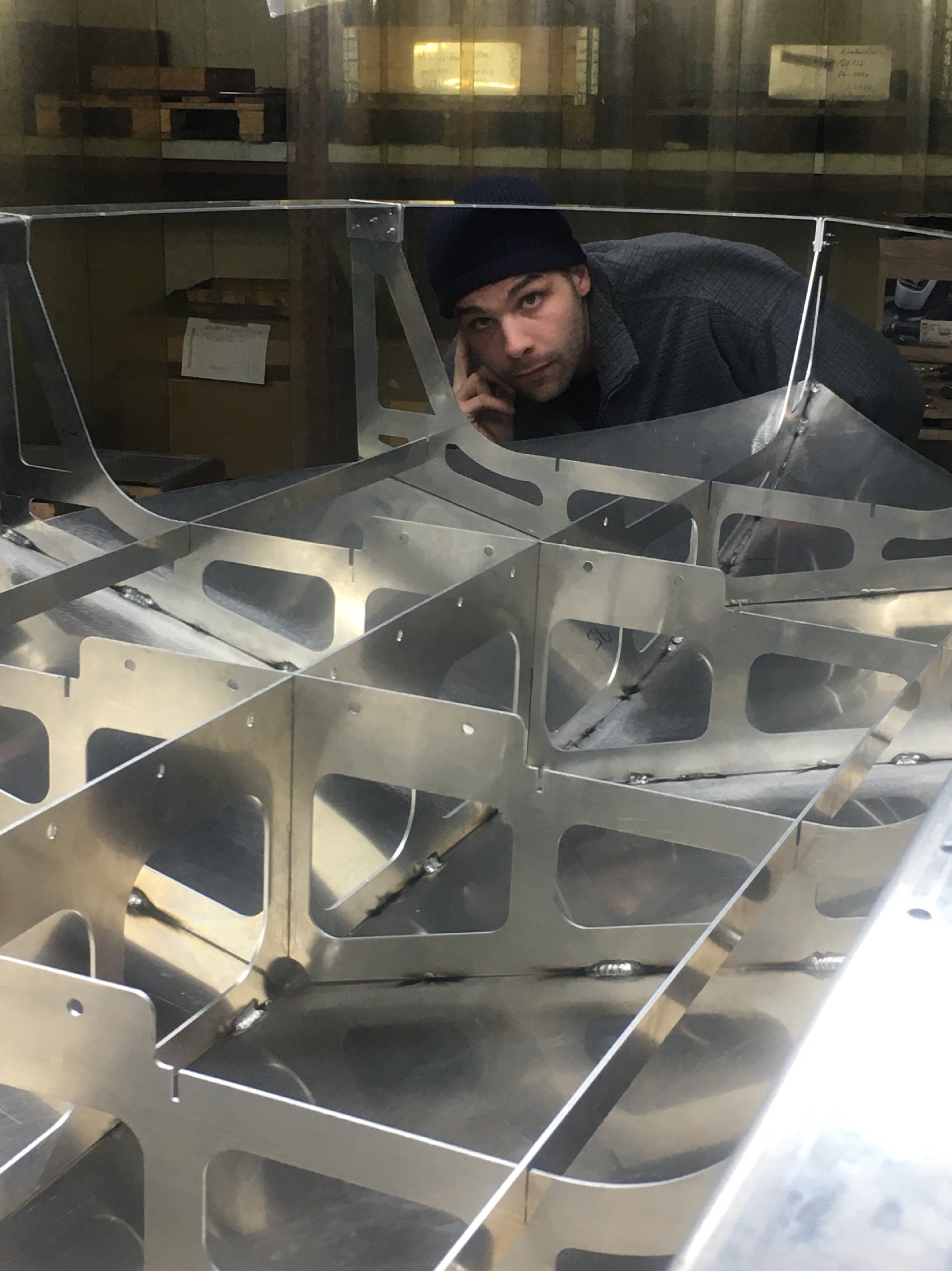 MATHIAS: "They wanted us to do an object in aluminium with this Rimowa sheet. We could do a chair, we could do a table, but we have a friend that has access to a lake in Eastern Berlin, and so we could just make a boat and we could ride it there. Would be much more fun."