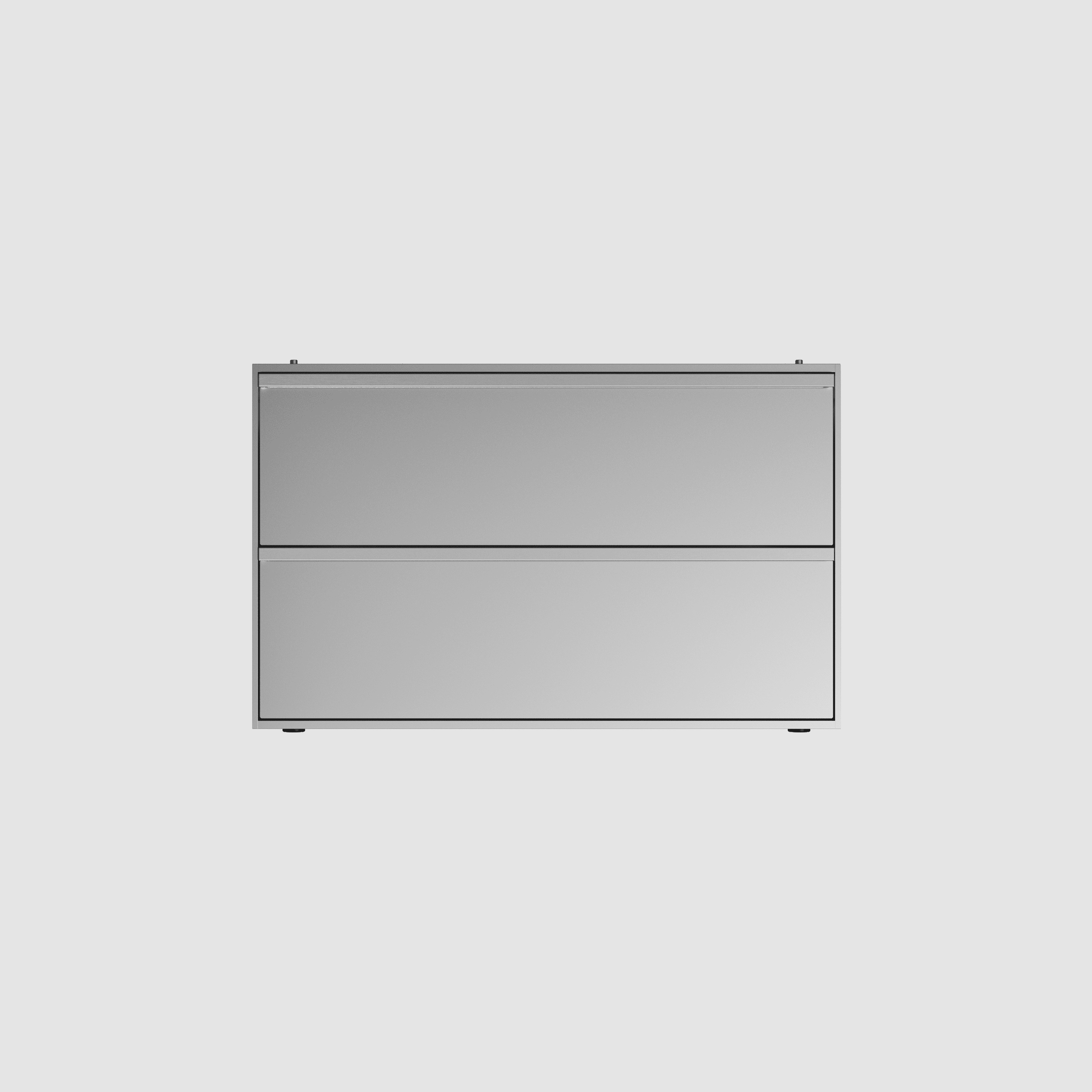 A versatile dual-drawer module machined from our signature 6-Series Recycled Aluminium. Anodised for a sleek and durable finish, it is assembled in Germany with Blum LEGRABOX drawer runners for smooth actuation, a feather-light glide and a silent soft-closing mechanism.