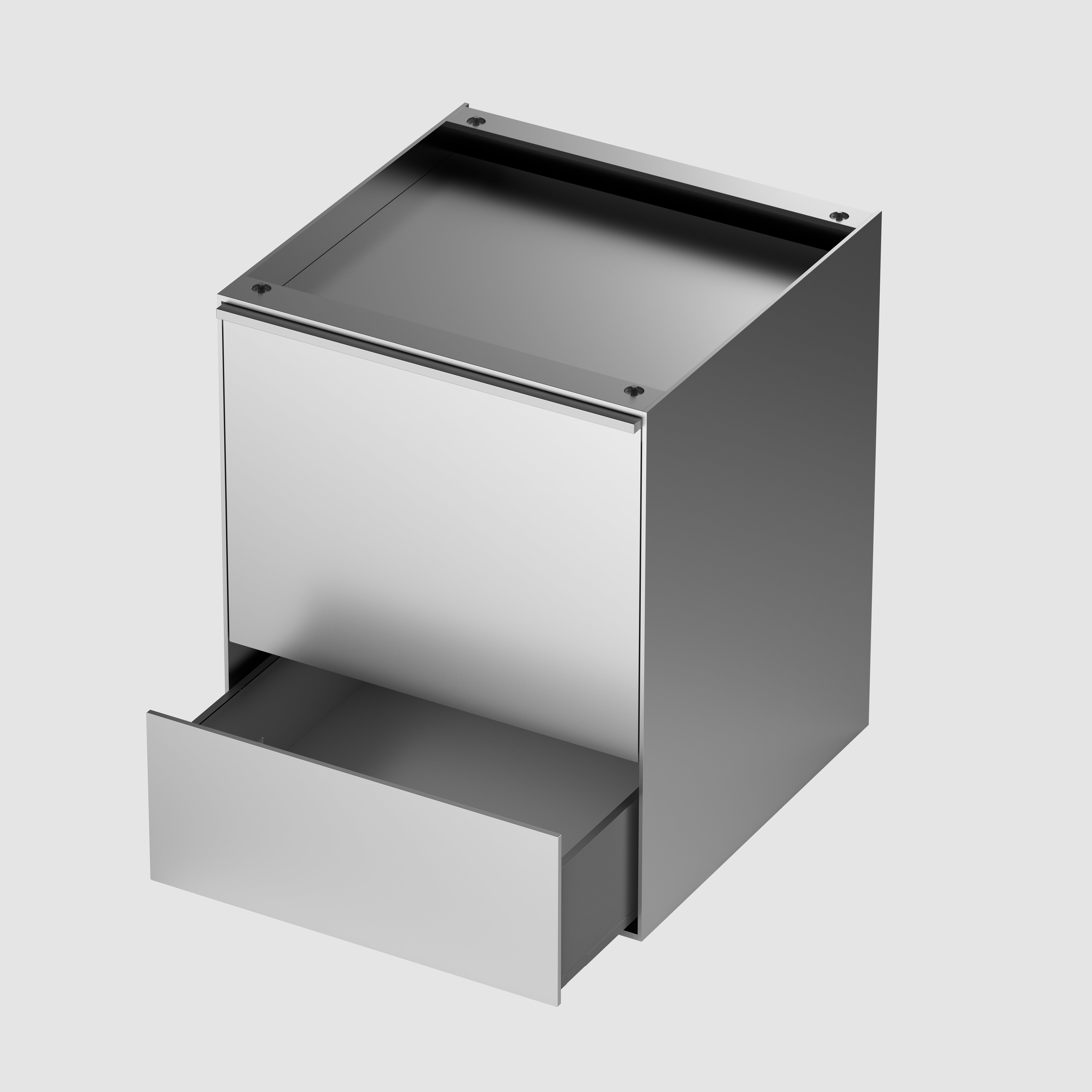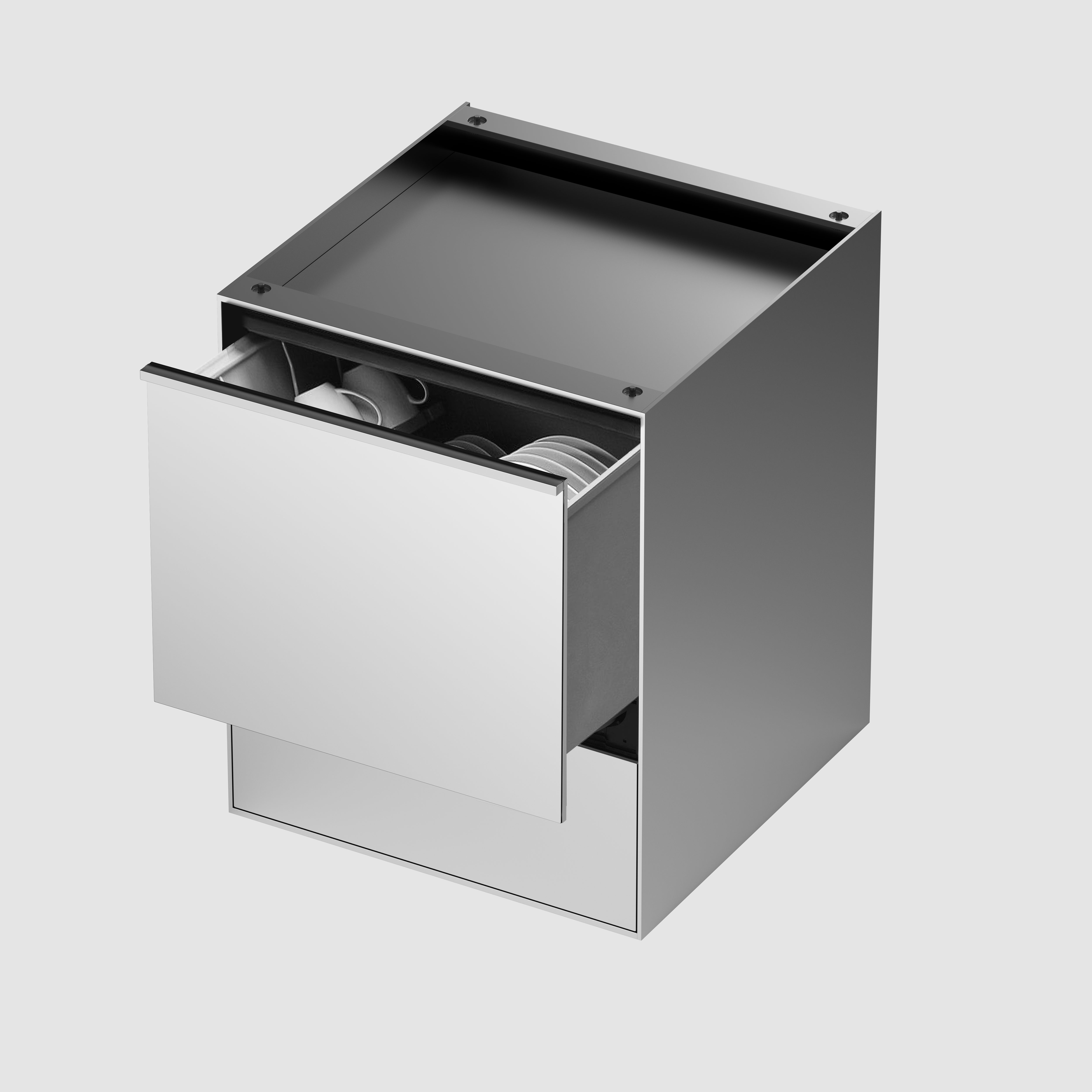 A housing module for a Fisher & Paykel DishDrawer™ integrated Dishwasher, made from our signature 6-Series Recycled Aluminium, ensuring longevity and a modern aesthetic. Assembled in Germany, it features an underside drawer with Blum LEGRABOX drawer runners offering smooth actuation, a feather-light glide and a silent soft-closing mechanism.