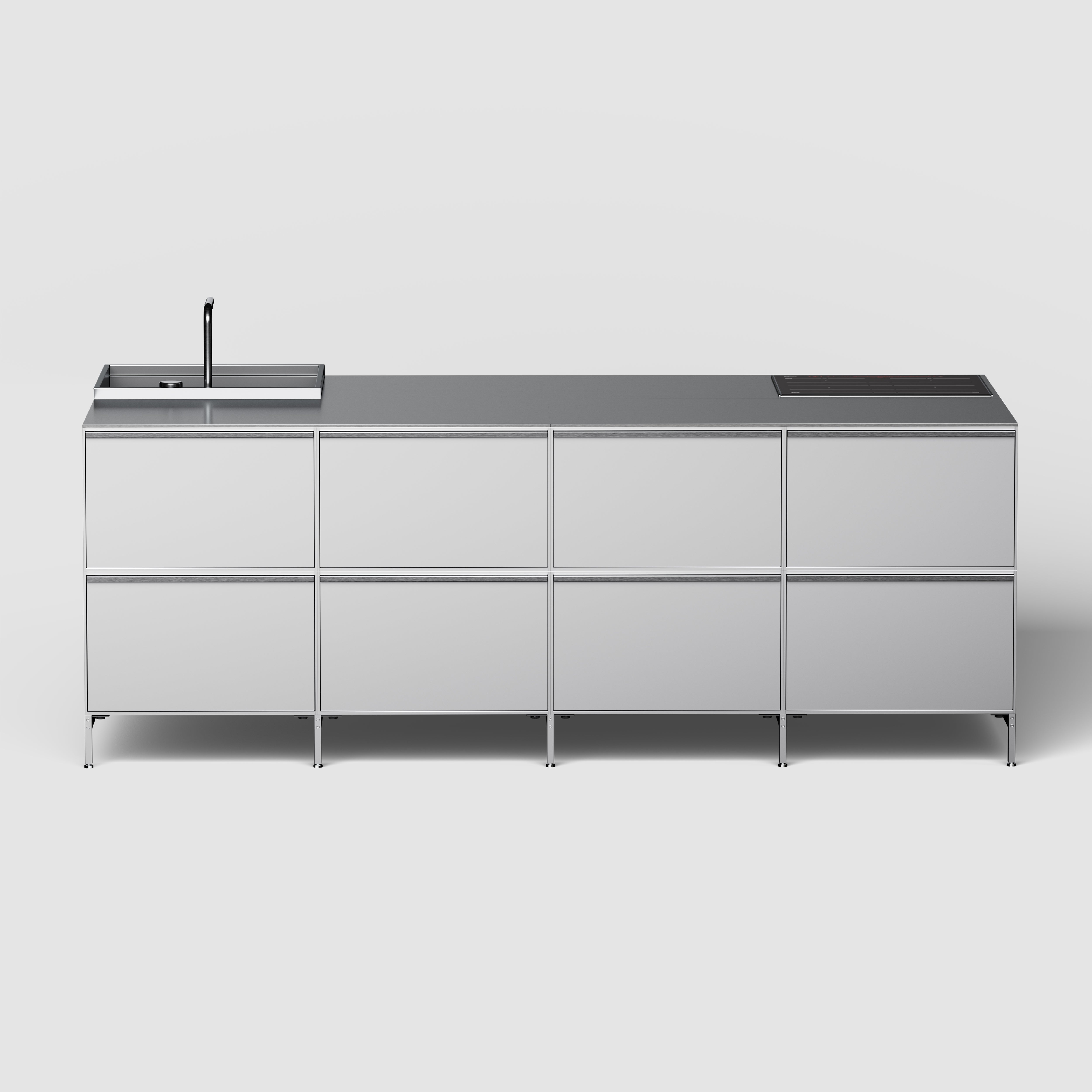 TERMINO follows a clear grid logic—modules align precisely, vertically and horizontally. No fixed walls, no permanent decisions. You can expand a system from a single drawer to a full kitchen, or reduce it back again. Every change is reversible, every combination valid.
