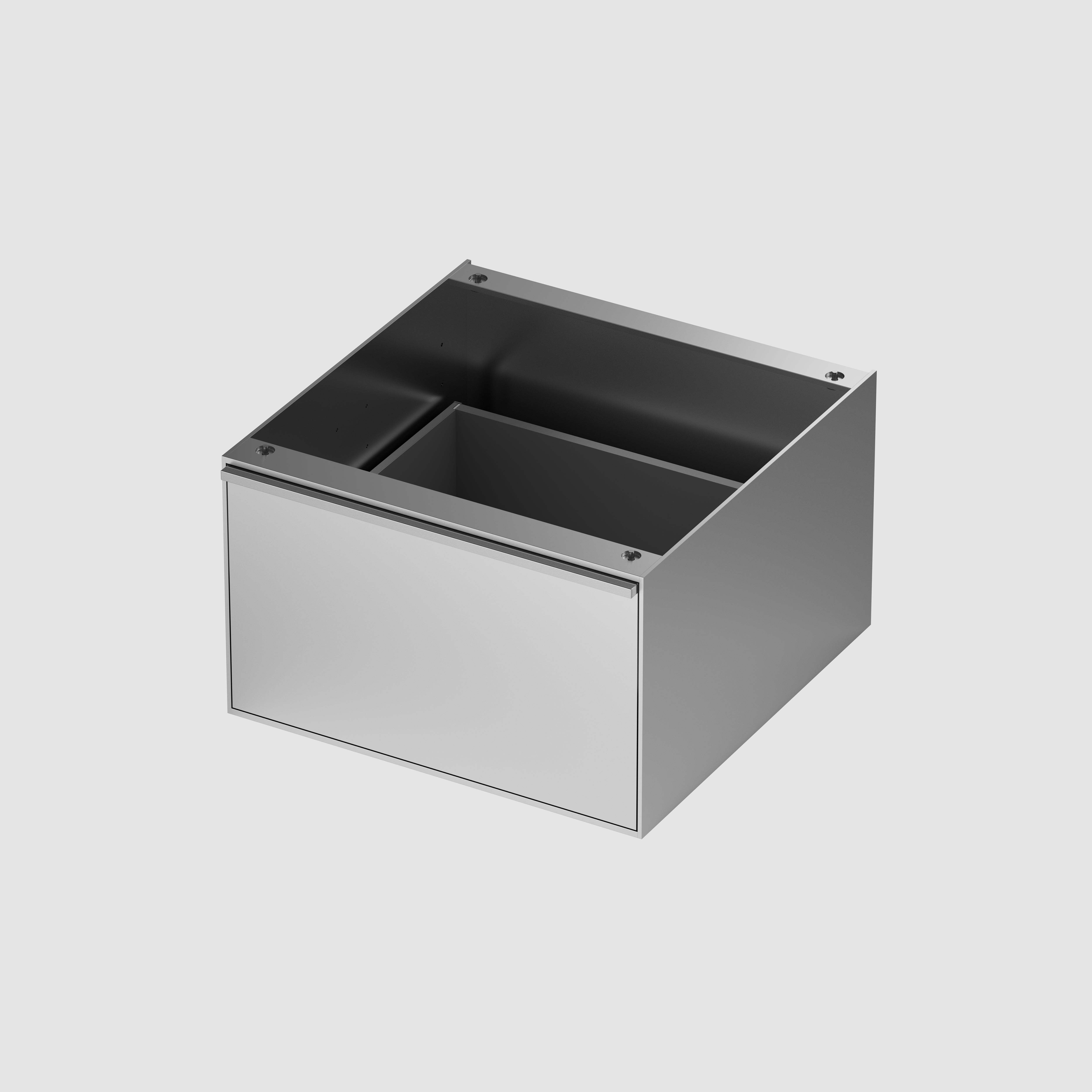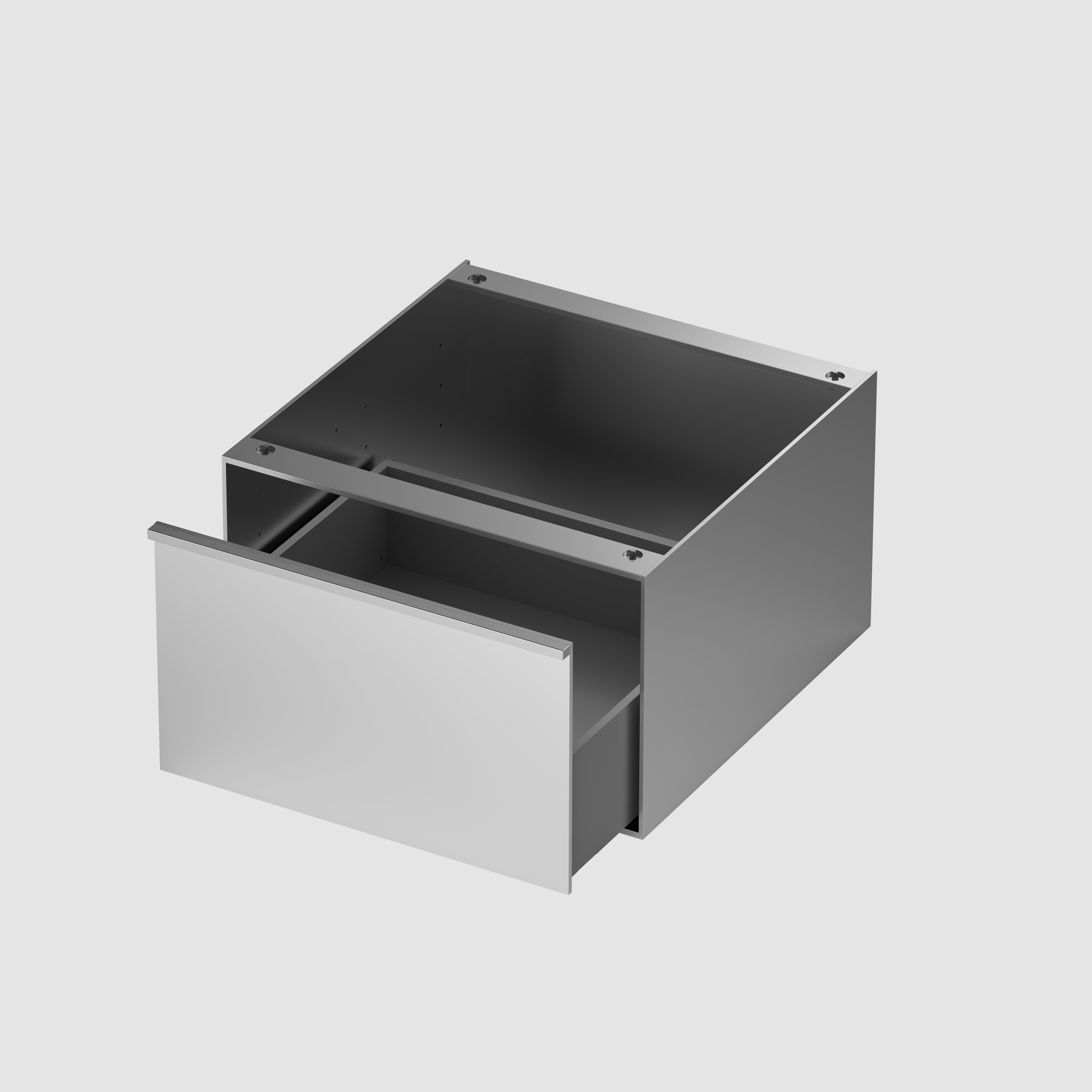 A versatile single-drawer module machined from our signature 6-Series Recycled Aluminium. Anodised for a sleek and durable finish, it is assembled in Germany with a Blum LEGRABOX drawer runners for smooth actuation, a feather-light glide and a silent soft-closing mechanism.