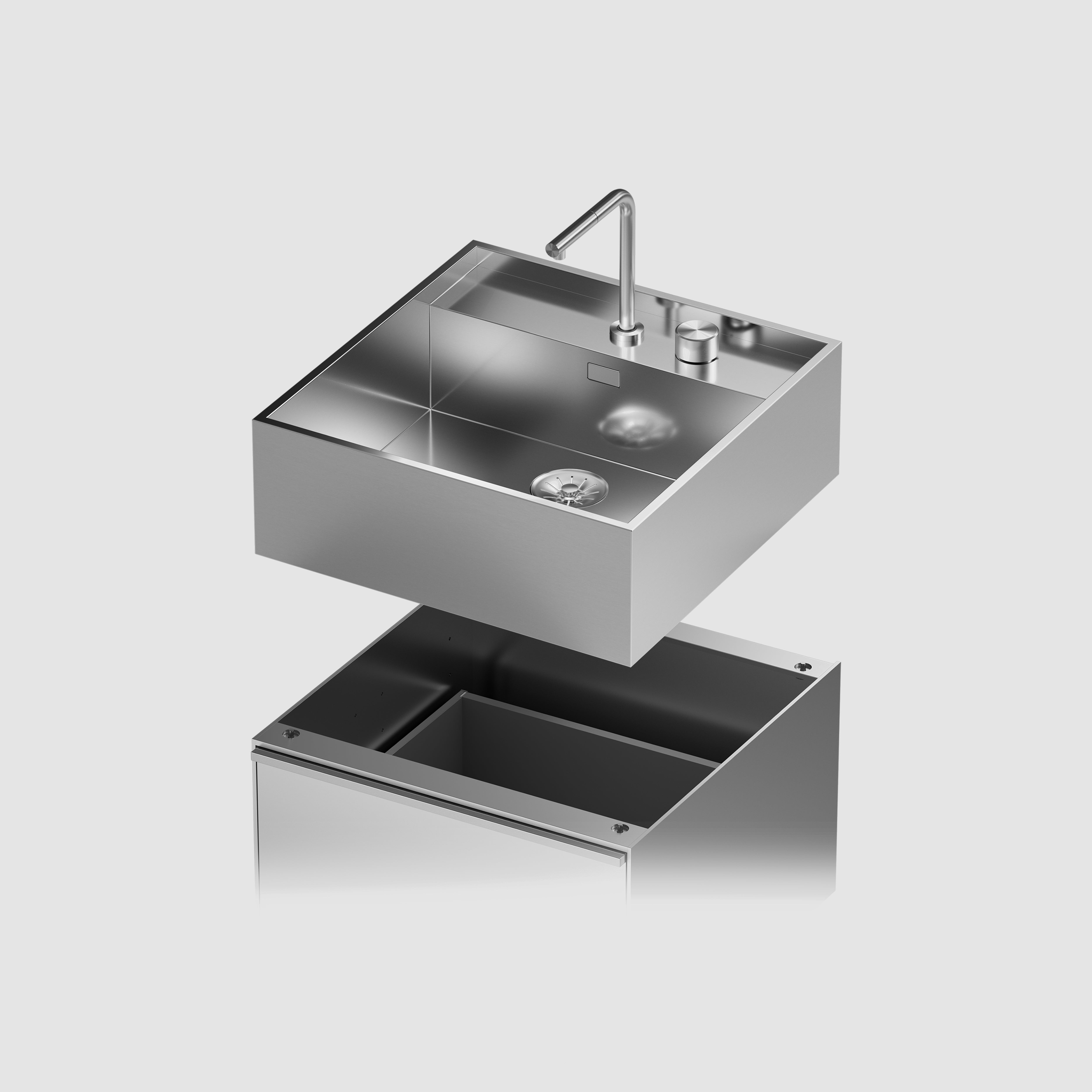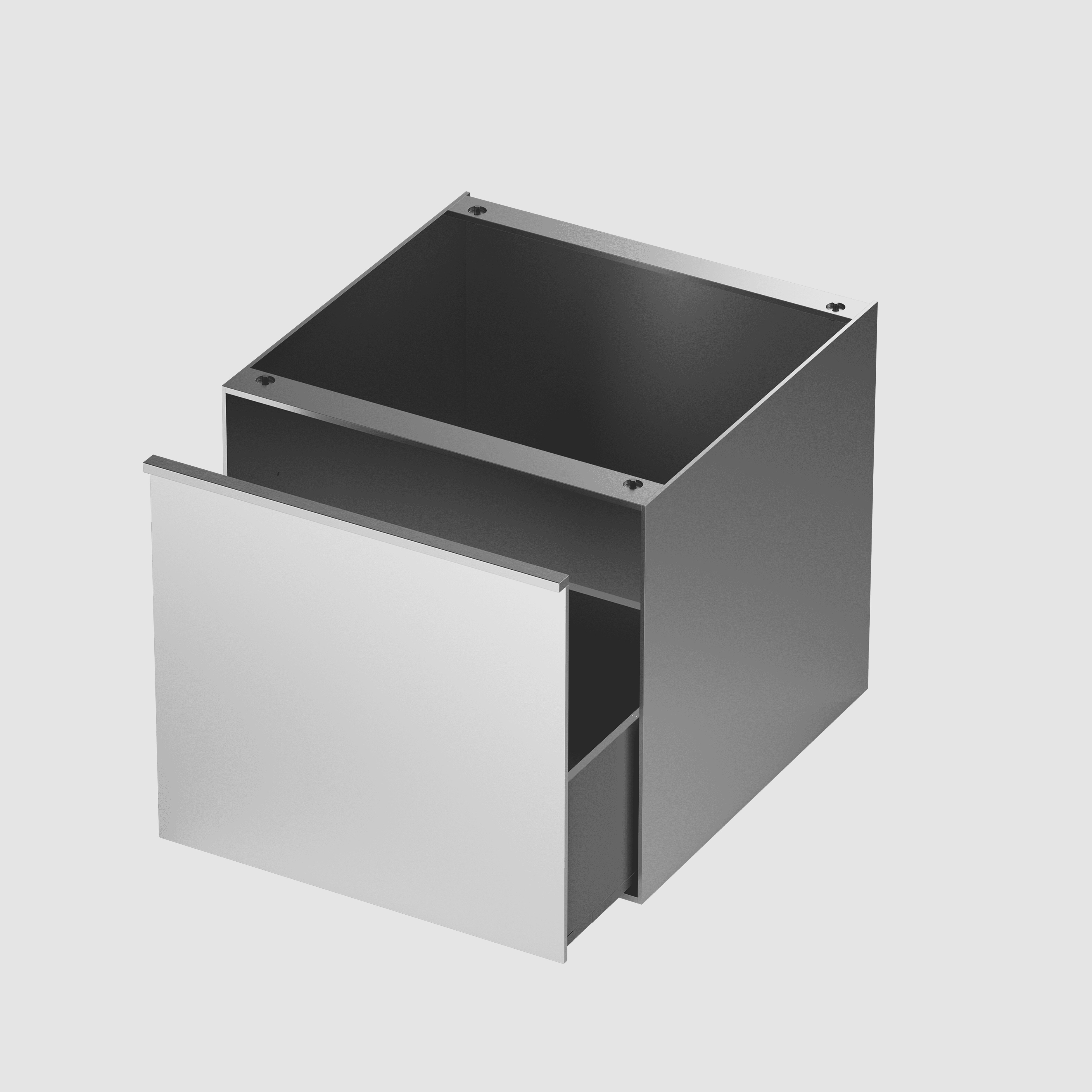 A larger drawer module designed to act perfectly as a base for our Sink Module M, machined from our signature 6-Series Recycled Aluminium. Bead-blasted and anodised for a sleek and durable finish, it is assembled in Germany with Blum LEGRABOX drawer runners for smooth actuation, a feather-light glide and a silent soft-closing mechanism.