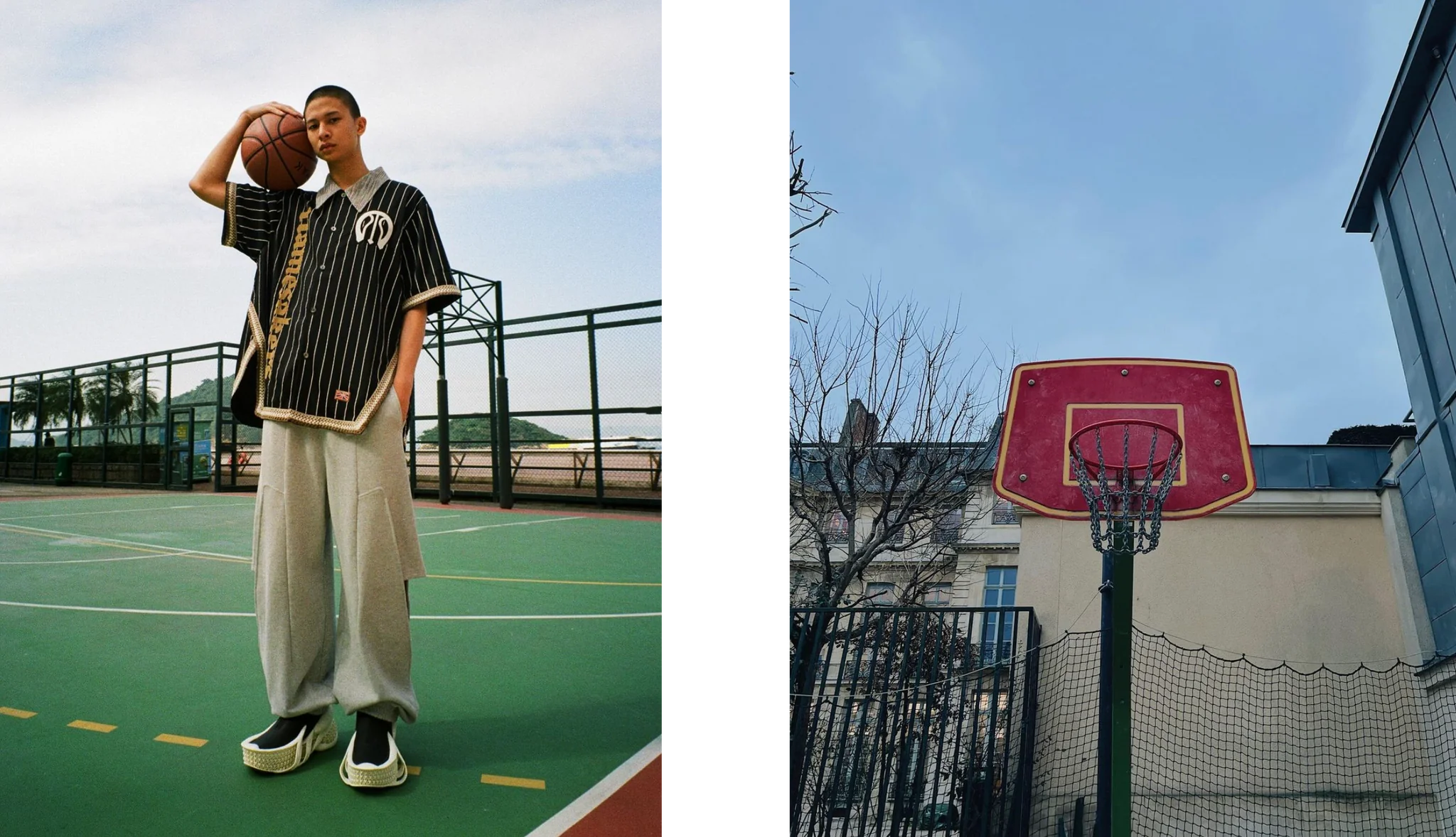 Wir wollten eine wahre Geschichte erzählen, die uns tief im Inneren berührt. Unsere Kleidungsstücke, unsere Kleidung, unsere Marke sollen der Welt die Geschichte unserer Familie erzählen. In unserer Designsprache von NAMESAKE verwenden wir drei verschiedene Elemente. Eins davon ist Basketball . Wir liebten Basketball schon als Kinder – unsere erste Liebe unter Brüdern. Doch als wir älter wurden, fand Basketball für uns Anklang, und wir wollten unserer Leidenschaft aus unserer Jugend Tribut zollen. Basketball ist also eines der zentralen Designelemente.